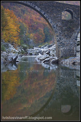 Бях решил да започна леко от Дяволския мост край Ардино, който снимах миналата пролет. Исках да имам и есенни кадри от там. Светлината се оказа средна хубост, наложи се да поизчаквам малко да се скрие излишното слънце: