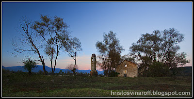 Продължих към язовир Копринка понеже бях виждал интересни есенни кадри оттам, но се оказах закъснял, видима есен нямаше. Реших да потърся поредната изоставена църква в западния край на язовира край село Виден. Мястото е малко странно там, блатисто с разпръснати горички и църква не се виждаше никъде. Попитах единствения човек, който срещнах по прашния път и той с започна да ръкомаха с неистов ентусиазъм…беше ням. Все пак не спря, докато явно погледът ми е почнал да става по-разбиращ и като се вгледах на където сочеше, видях тъмния силует на постройката сред малка горичка. Беше изцяло на сушата, което веднага ме надъха да пробвам да се върна рано на пролет, когато язовирът стига до това място.